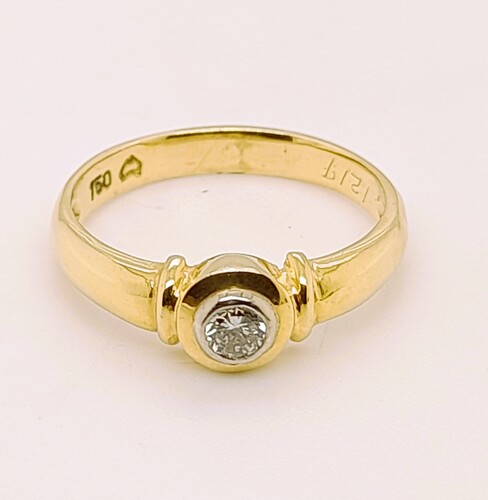 18 Carat Yellow Gold Bezel Set Solitaire Diamond Ring AUS Size M
