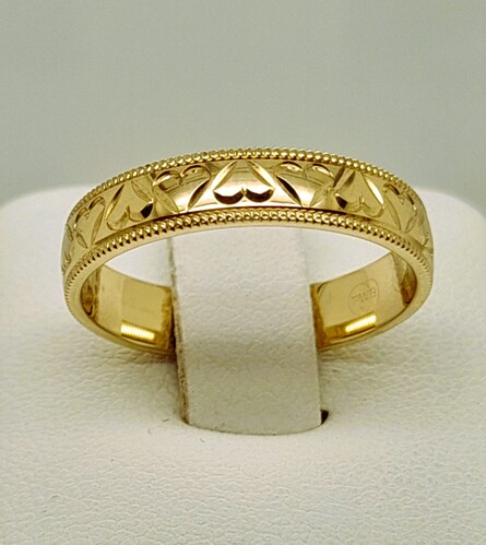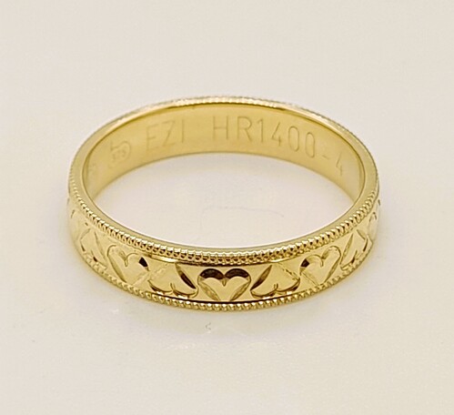 9 Carat Yellow Gold Ring Engraved with Hearts