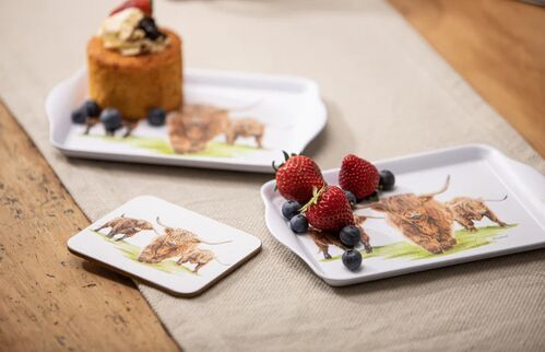 Highland Herd features the artistry of Harriet Blaskett, who skilfully renders these charming three Highland Cows. Harriet delves into the very essence of these magnificent creatures. These cows, residing at the serene Green Lane Farm in the UK, beckon those seeking a tranquil countryside escape.