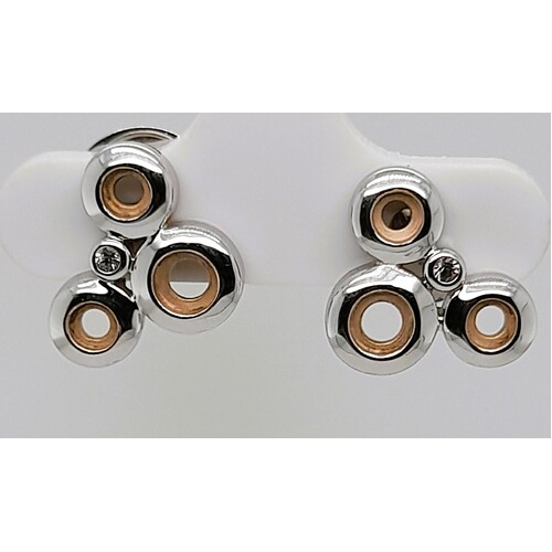 Breuning Sterling Silver & Rose Gold Plated White Sapphire Earring