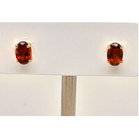 9 Carat Yellow Gold Claw Set Garnet Stud Earrings