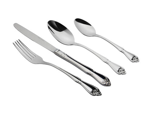 - 24 piece set contains: 6 x table forks, 6 x table knives, 6 x dessert spoons and 6 x teaspoons