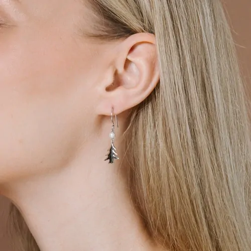 Sterling Silver White Freshwater Pearl Christmas Tree Drop Earring