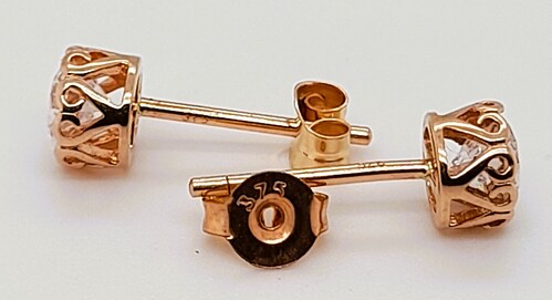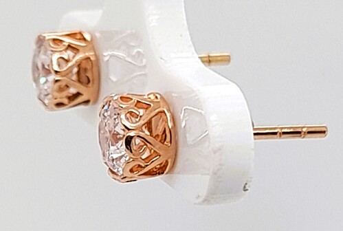9 Carat Rose Gold Filigree Set Cubic Zirconia Stud Earrings