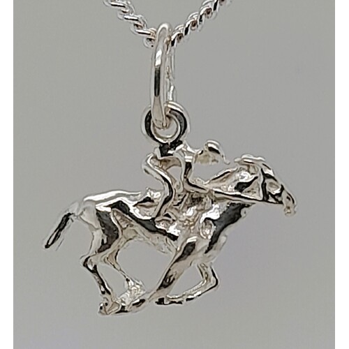 Sterling Silver Race Horse & Jockey Charm or Pendant