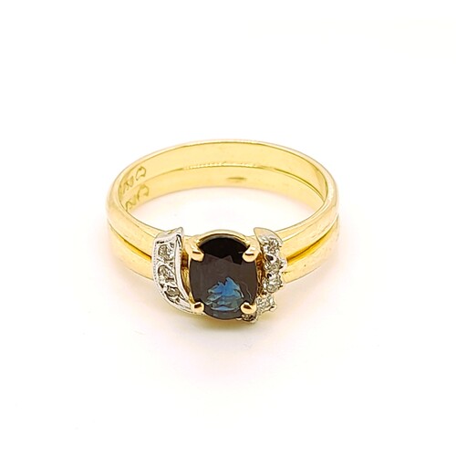 18 Carat Yellow Gold Natural Sapphire and Diamond Ring