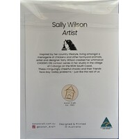 Inspired by her country lifestyle, living amongst a menagerie of chickens & other farmyard animals, artist & designer Sally Wilson created her whimsical CHOOKS ON cartoon series in her studio in the village of Cobargo on the NSW South Coast.
