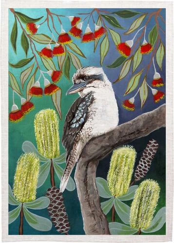 Sally Wilson Art Kookaburra Botanical Cotton Tea Towel