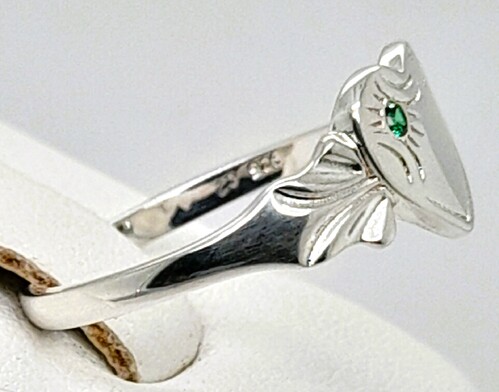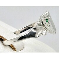 May Sterling Silver Birthstone Single Heart Signet Ring with Emerald Cubic Zirconia AUS Size M