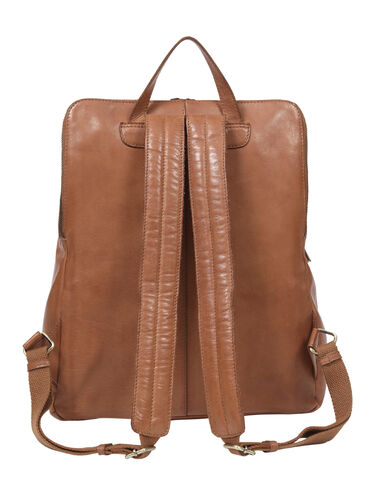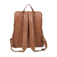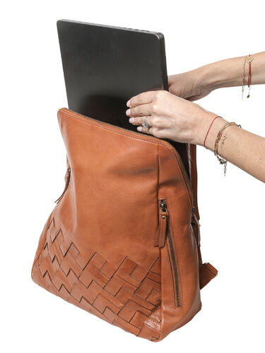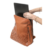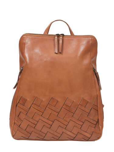Modapelle Tan Leather Backpack with Decorative Front Weave