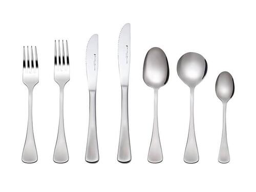 - Contains: 8 x entree forks, 8 x table forks, 8 x entree knives, 8 x table knives, 8 x dessert spoons, 8 x soup spoons, 8 x teaspoons