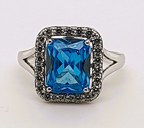 Sterling Silver Created Blue Topaz and Cubic Zirconia Dress Ring AUS Size P CLEARANCE