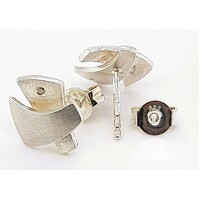 Sterling Silver Polished & Satin Finished Diamond Set Stud Earrings