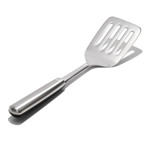 With the OXO Steel Cooking Turner in hand, you’ll be able to chop up ground beef, lift burgers, and flip eggs with confidence. It features an extra-sturdy head that’s flexible enough to slide under food but strong enough to safely get the job done. Plus, it has a stainless steel handle with a non-slip grip that you’ll think was made specifically for your hand.
