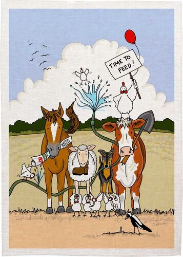 Sally Wilson Art 'CHOOKS ON' Cotton Tea Towel