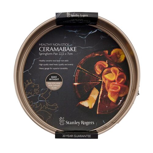 This 22.5 x 7cm round springform with a removable ceramic non-stick base is designed for popular basque, or dreamy rich baked berry, cheesecakes and much more. The Stanley Rogers Ceramabake Collection features a healthy ceramic two-layer non-stick coating. From sweet to savoury baking, including air fryer pans, you can be confident you are always using high quality products in your kitchen.