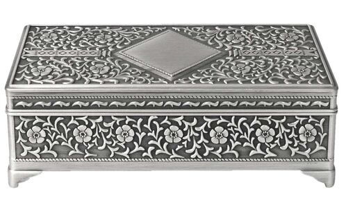 The Russell Collection Rectangular Pewter Finish 18cm Diamond Design Jewellery Box
