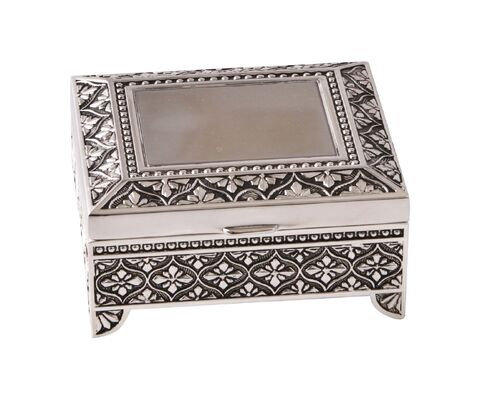 Square Silverplate 7.5cm (3") Diamond Design Jewellery Box