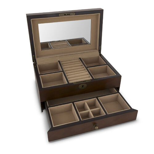 The Russell Collection by Whitehill Walnut Veneer Timber 28cm Single Draw Jewellery Box