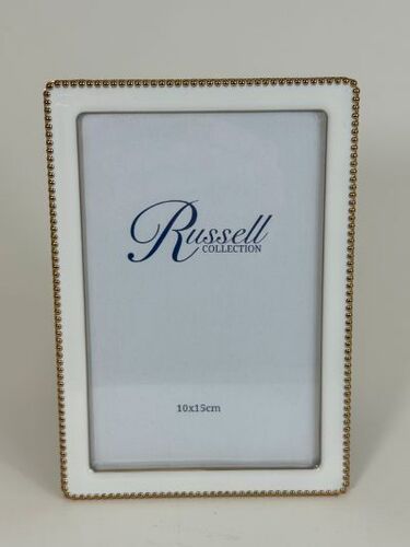 White/Goldtone Beaded 10 x 15cm (4 x 6") Photo Frame