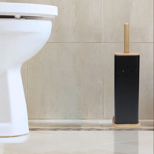 Introducing the Eco Basics Toilet Set, a harmonious fusion of natural materials and eco-friendly design. Crafted with bamboo, rust-resistant powder-coated chrome, recyclable plastic, and stiff nylon bristles, this set elevates your bathroom essentials into eco-conscious statements of style and functionality.